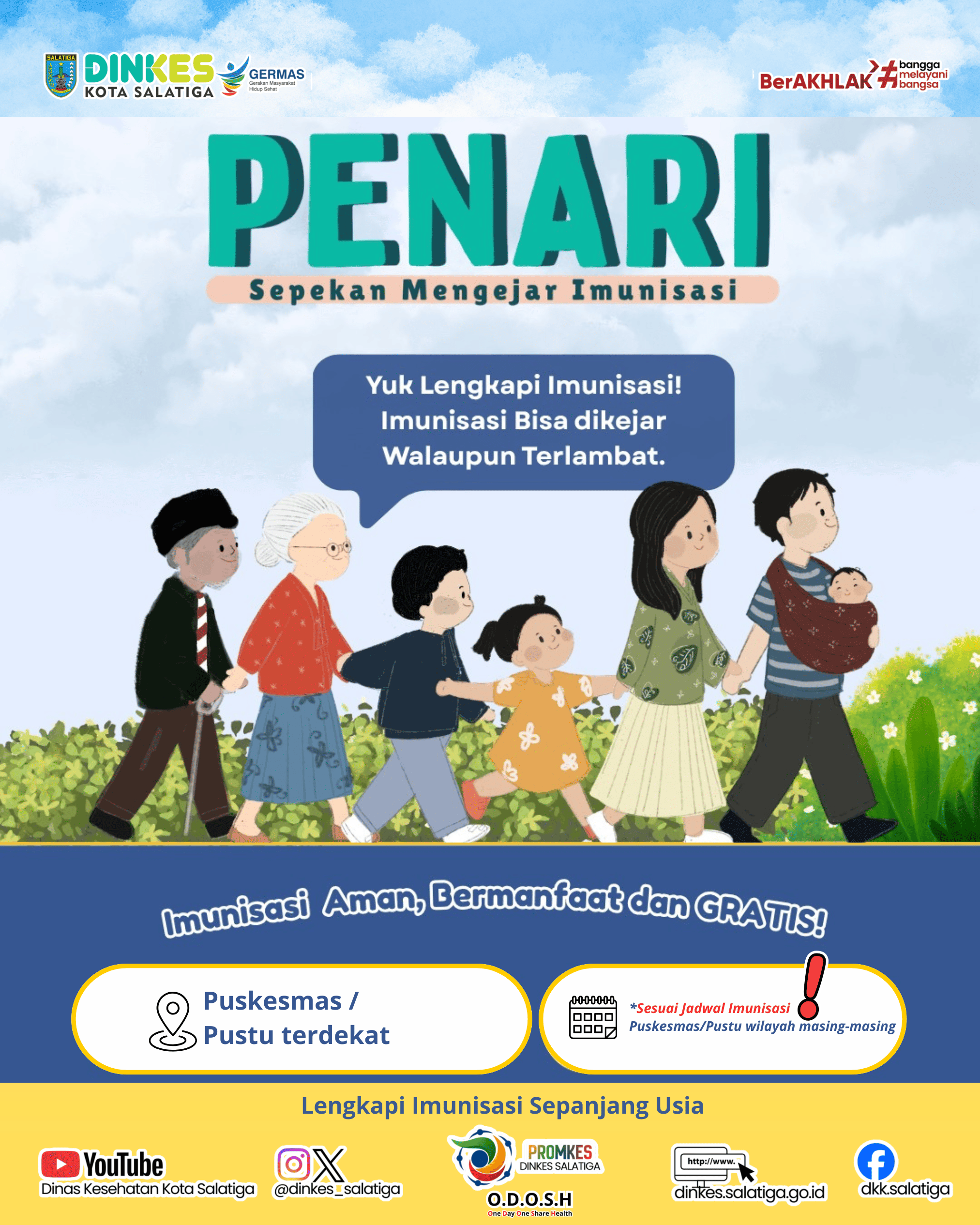 Melalui program PENARI, Dinas Kesehatan Kota Salatiga mengajak seluruh orang tua untuk tidak ragu membawa anaknya ke fasilitas kesehatan guna melengkapi imunisasi. Upaya ini menjadi bagian penting dalam mewujudkan generasi sehat dan terlindungi sepanjang usia.