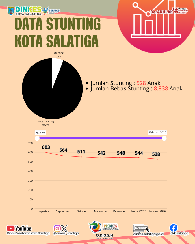 PERKEMBANGAN KASUS STUNTING FEBRUARI 2026 KOTA SALATIGA Mar 9 dinkes Berikut kami sampaikan data stunting Kota Salatiga Periode Februari 2026Mengatasi stunting membutuhkan kerja sama semua pihak agar anak tumbuh sehat, cerdas, dan produktif di masa depan
